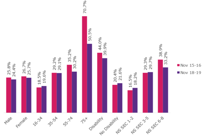 There are key differences in activity levels across different demographic groups, however, since Active Lives was launched GM has seen a decline in inactivity across nearly all demographics, the exception being 16-34 year olds. It is also important to note the narrowing of inequality gaps, in particular the inactivity age gap which has shrunk from a 35.2% difference between those aged 75+ and those aged 16-34 to a 27.1% difference. Whilst this is still a large gap that needs to be tackled this is the largest reduction in an inactivity gap across GM.