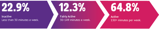 The latest Active Lives data shows that there has been an increase in activity levels across Trafford in the last 12 months. 77.1% of adults in Trafford are now moving (active and fairly active), this equates to 143,800 adults. Since Active Lives launched, November 2015-16, the inactivity rate has decreased by 4.3%, meanwhile in Greater Manchester the rate has increased by 2.6%.