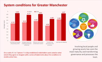 Evidence locally and nationally shows that transformational change on this agenda requires a continual focusing on maturing the conditions to tackle inequalities and enable active lives. Referred to locally as our five enablers for change, we are proud to see positive change across all five of these over the last four years.