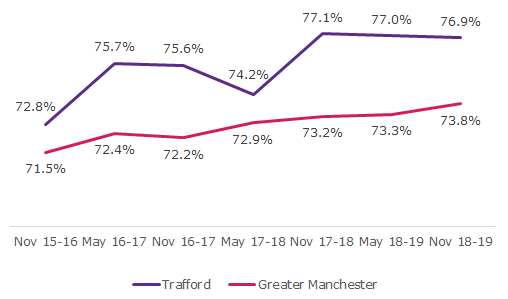 These results continue the positive trend in Trafford, there has been an increase of 4.1% in the number of adults moving, (active and fairly active), since Active Lives launched in November 2015-16. This is a greater increase than both England (1.0%) and Greater Manchester (2.3%).