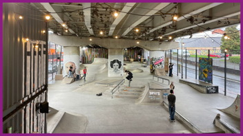 After Hough End, the group travelled to Projekts MCR Skatepark. This social enterprise is located under the Mancunian Way flyover, and has transformed a disused, crime-ridden patch of land into a vibrant hub for skateboarding, creativity, and community. Projekts MCR is more than just a skatepark – it’s a co-operative, deeply embedded in the local community. The organisation runs outreach in schools and alternative provision, delivers targeted programmes for underrepresented groups, and works closely with Manchester City Council and MCRactive to promote access to urban sports.