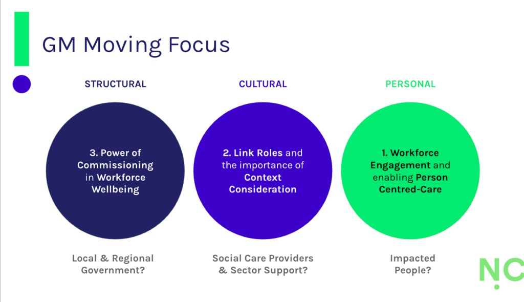 That said, time, space and commitment to more person-centred approaches are being enabled through new strategies and pilot programmes taking place across the city region, where spaces for shared learning and best practice are being platformed across health and social care. The GM Wellbeing Toolkit, advocating and advising on how to take care of your own and your team’s wellbeing, is a prime example.