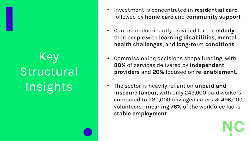 That, and more joined-up planning, greater flexibility and shared standards at a strategic level that support testing and learning across boroughs, care settings and the different groups in need of social care. Currently, it’s VCFSE organisations, often driven by people with lived experience of social care challenges and technology-driven innovation, delivered in people’s homes, that are leading the charge, allowing for more targeted delivery and flexible pathways through a person-centred approach.